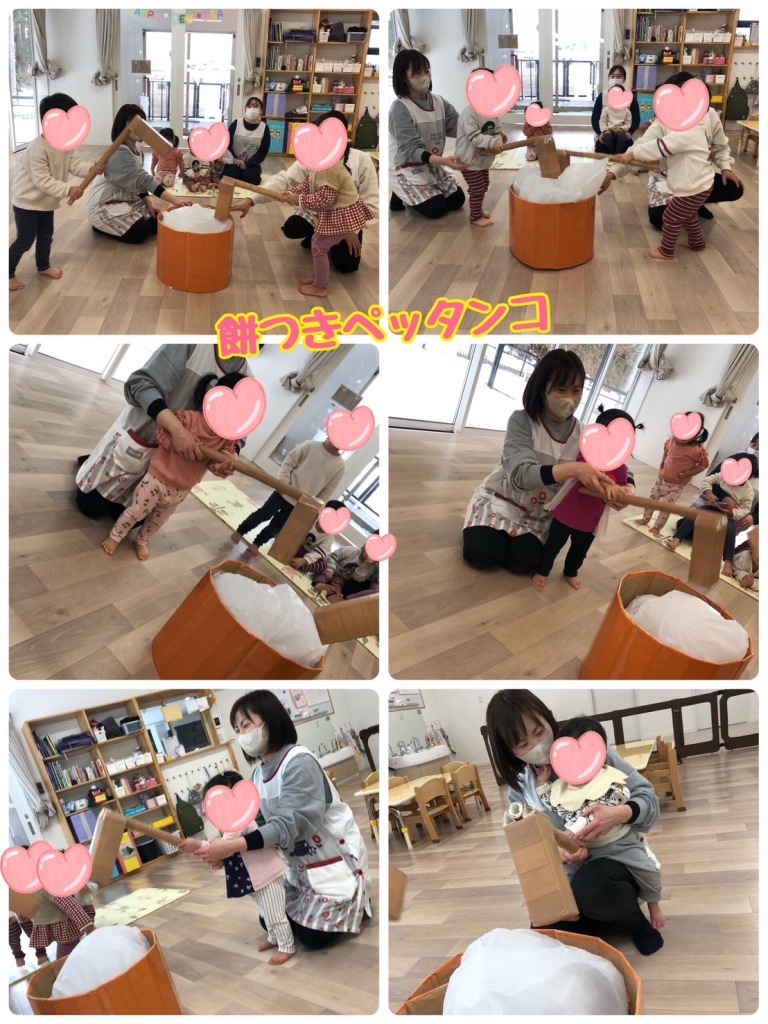 もちつき大会では、風船のもちを杵でペッタンペッタン❗️