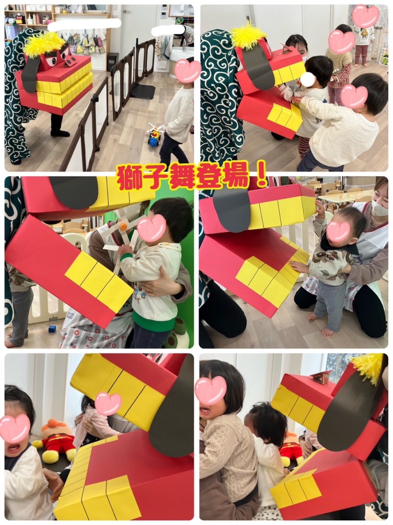 こま回しをして遊んでいると…獅子舞登場‼️