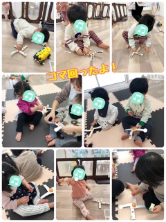 牛乳パックのコマにシールを貼ってクルクル〜♪