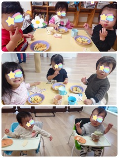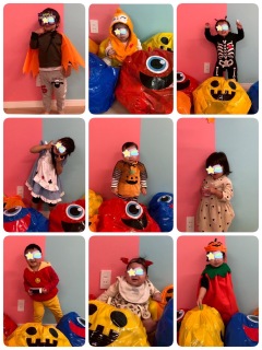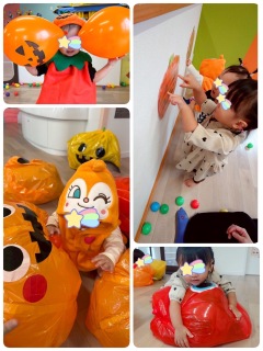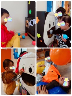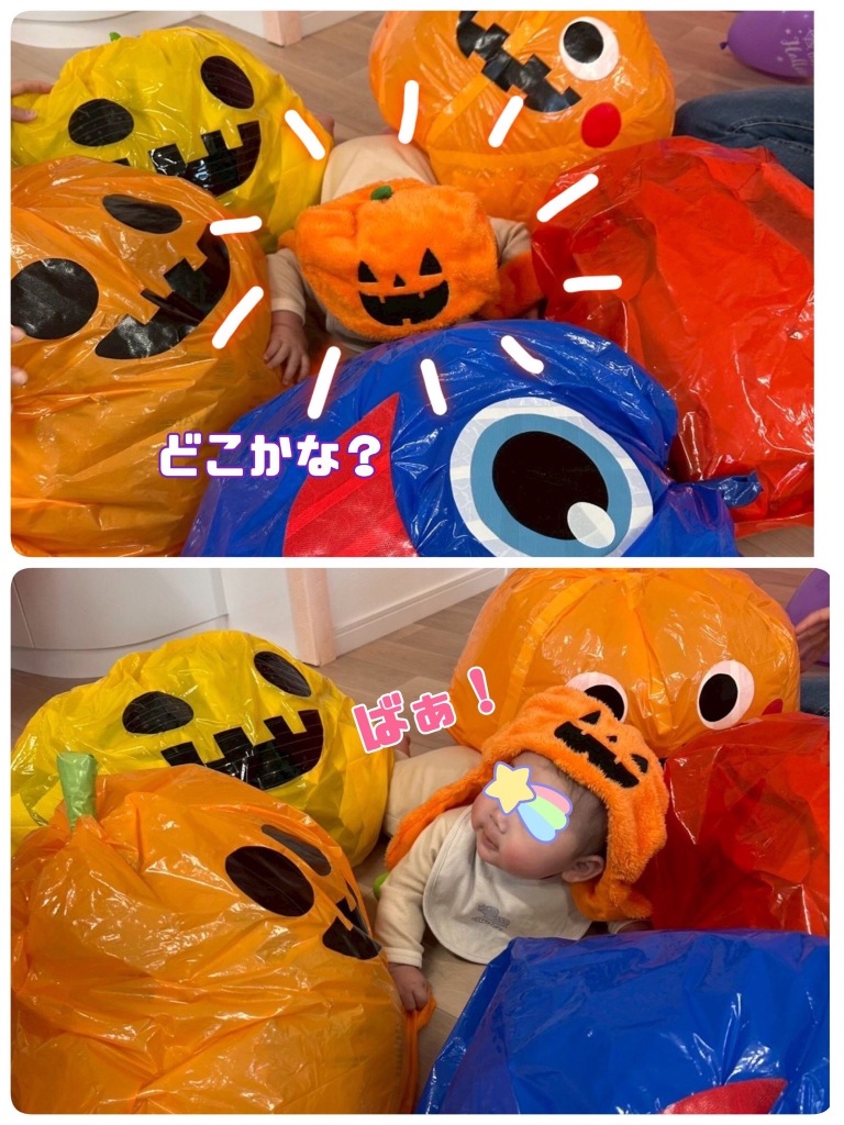 2025.10.31 【第六保育園】ハロウィンパーティー👻 ハロウィンパーティーをしました🎃 ハロウィンのお話をみてから、みんなで「トリックオアトリート!」と言ってお菓子をもらいました😄 おばけの玉入れでは、おばけのお口にボールをポイッ➰ ペタペタかぼちゃにボールをペタッ!ペタペタにほっぺもくっつけて楽しんでいる姿が可愛らしかったです😄 かぼちゃやおばけ、モンスターの風船コーナーでは、大きなかぼちゃ風船に混ざって隠れる子、大興奮でモンスターをポイポイ投げて楽しんでいました😌 給食のおばけご飯や、午後のお菓子パーティーでは喜んで食べ、楽しいハロウィンパーティーになりました✨