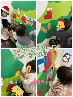 おやつを食べた後はみんなで大きなツリーに飾り付け‼️