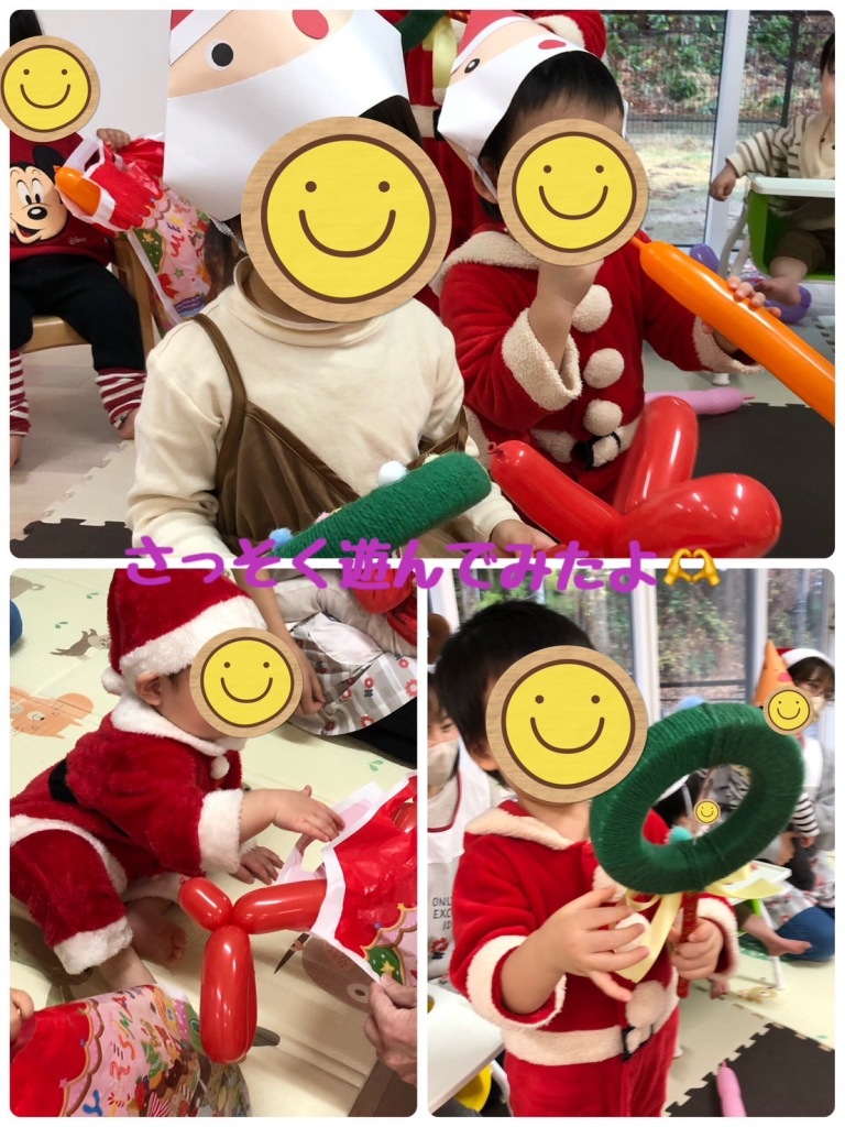 涙を流してしまう子もいましたが、みんなサンタさんからプレゼントを受け取ることが出来ました🎁