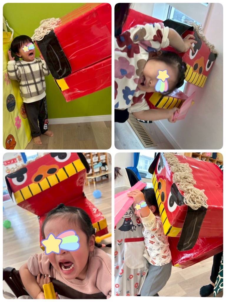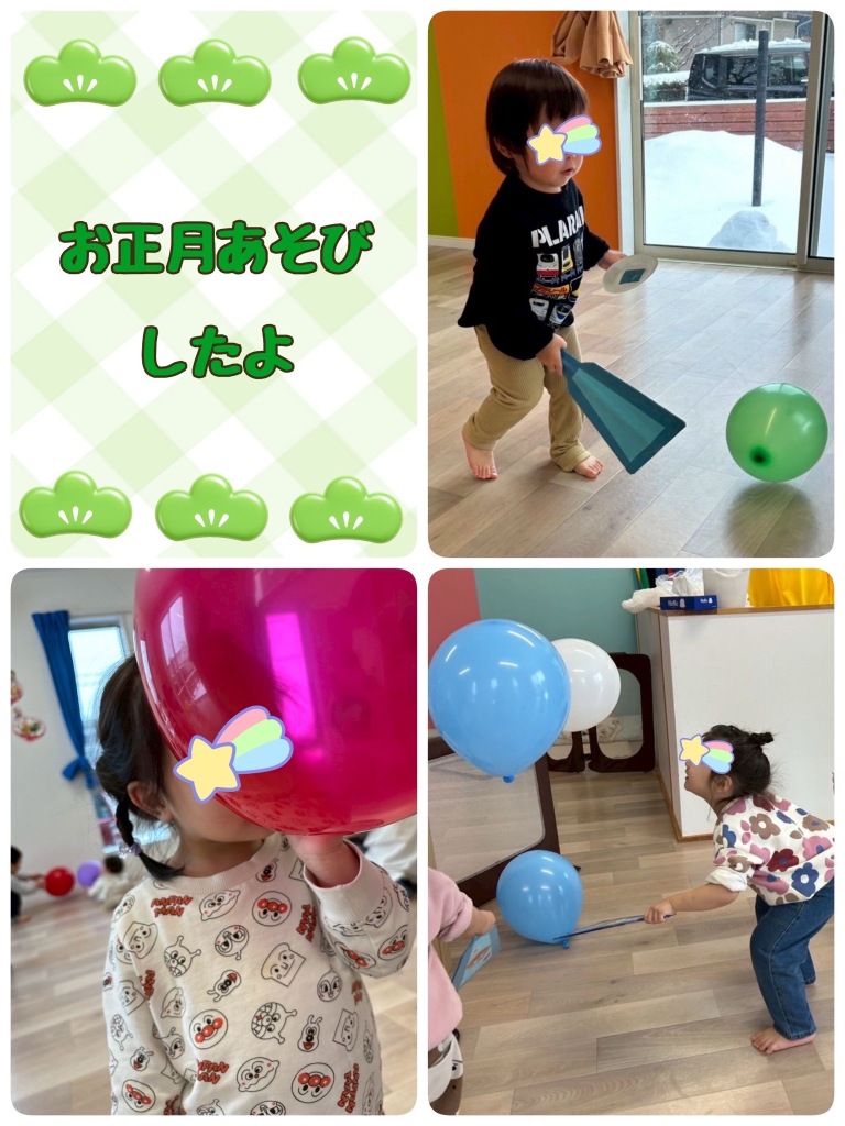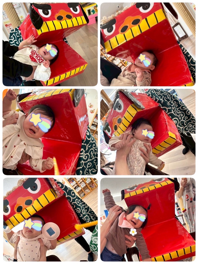 2026.1.12 【第六保育園】新年おたのしみ会🎍 新年おたのしみ会をしました🎍 午前のおやつにヨーグルトを食べ、お正月あそびへ😊 風船羽つきやコマ、だるまさんのガラガラなど色々なコーナーを回りながら遊んでいました😊 太鼓の音とともに獅子舞さんが登場すると驚きと怖さでで大泣きの子どもたちでしたが、今年も元気に過ごせるよう獅子舞さんに頭を噛んでもらいました😌 今年もたくさん遊んで元気に過ごしましょう❤️