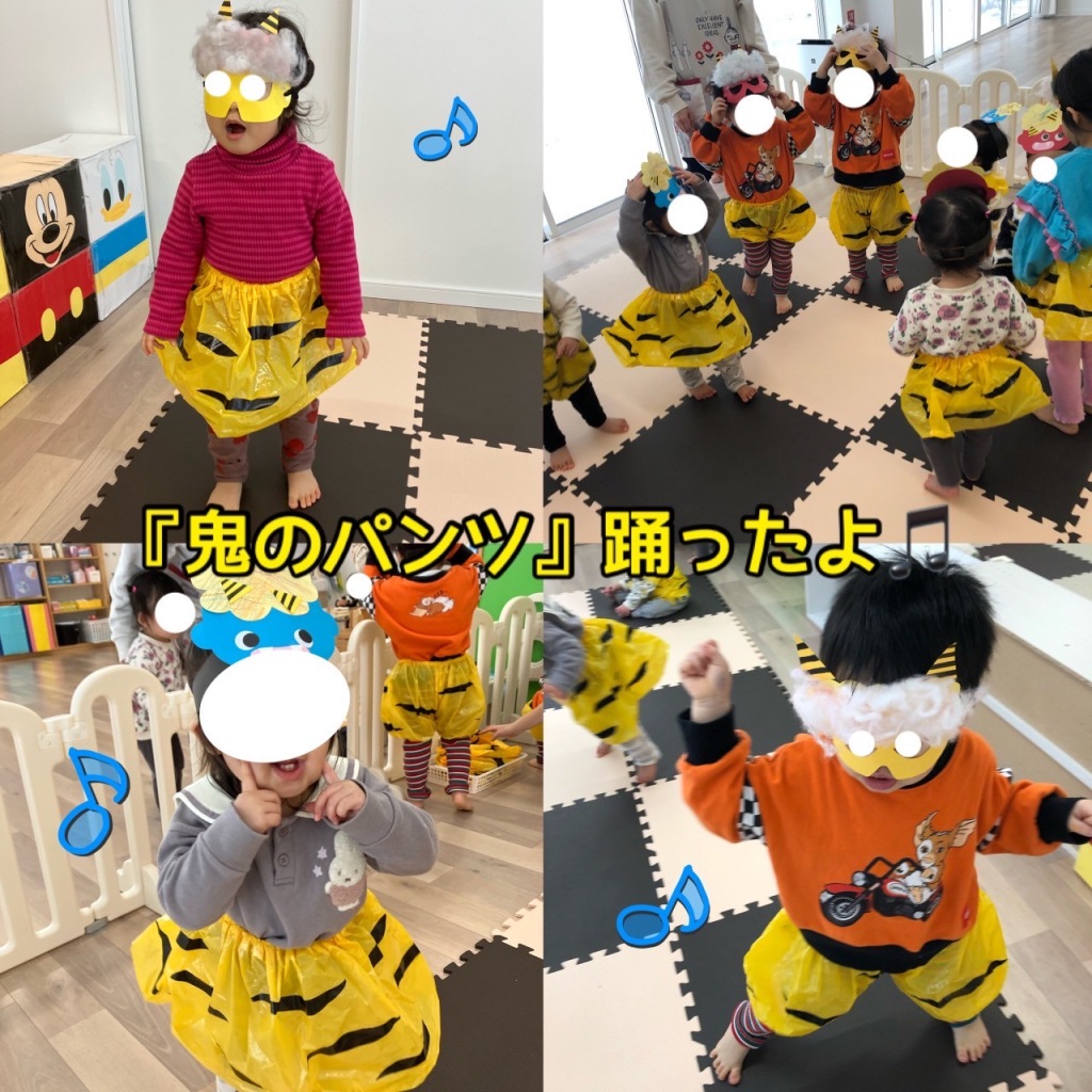 鬼のパンツをはいて、鬼のお面を被ってみんなで『鬼のパンツ』の踊りを踊り気合十分✨