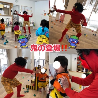 朝から「今日おにくる?」と気になりそわそわしていたおともだちや、お家から可愛い鬼に変身してきたお友だちなどがいました😊