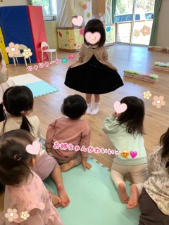 卒園児のKちゃんが準備を終え、みんなの前に登場すると、「お姉ちゃんかわいい☺️💓」とみんな目をキラキラさせていました👀✨