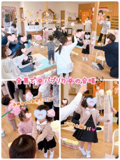お花ステッキ🌷を持ちながらリズムに合わせてゆらゆら🎶としてみたり、ダンス💃🏻を踊ったりしながら、〝ありがとう″や〝おめでとう″を伝えていました☺️❣️