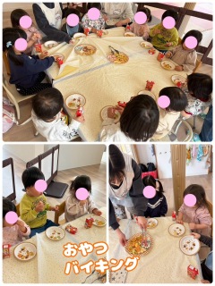 ジュースを美味しそうにゴクゴク飲んだり、「これがいい!」と好きなお菓子をお皿に入れて食べたりしました🤤