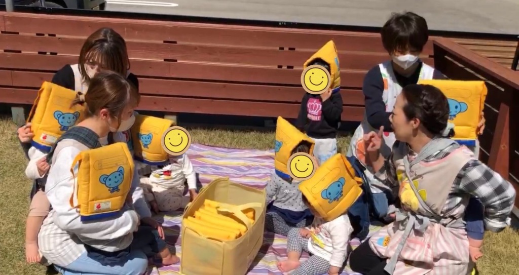 2026.4.23 【第六保育園】避難訓練 朝の自由遊び中に調理室から出火した想定で避難訓練を行いました。 今年度初めての避難訓練でしたが、慌てることなく保育者の誘導でスムーズに避難することができました。 また、防災頭巾も泣かずにみんなで被ることができました。 今後も、職員間で安全で円滑な避難方法を話し合い、訓練を実施していきたいと思います。