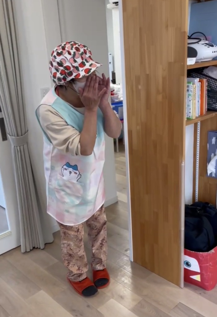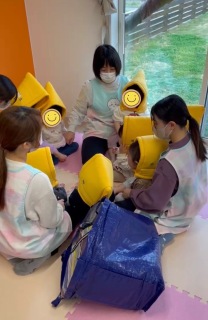 新入児は、防災頭巾を被るのことを嫌がる姿が見られたため、これから被ることに慣れるよう繰り返し練習をしていこうと思います。