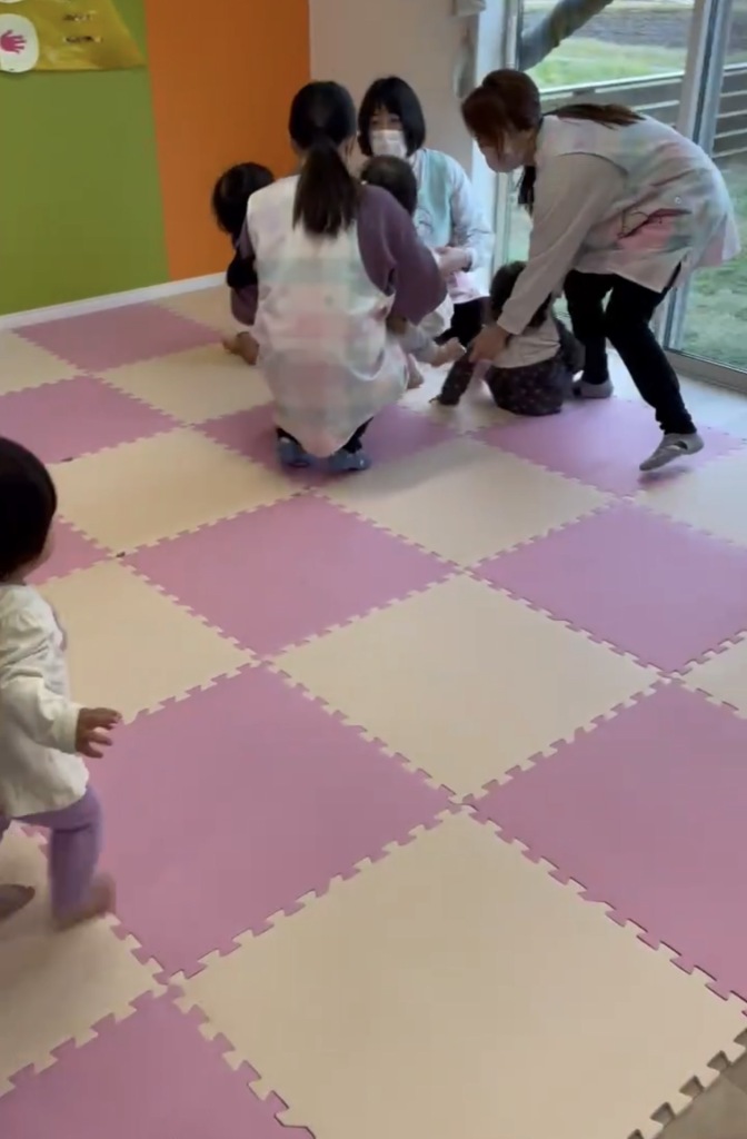 不安で泣き出しそうな子もいましたが、保育者の膝に座ると落ち着いて参加することがらできました。