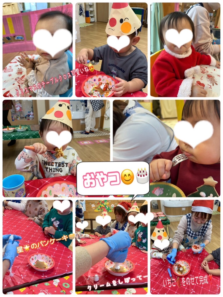 クリスマスのおやつは調理員さんが焼いてくれた星型🌟のホットケーキ!