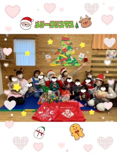 たくさんのプレゼント🎁を持ってきてくれました!プレゼント運びは2歳児のお姉さんサンタさん🎀が手伝ってくれましたよ🥰