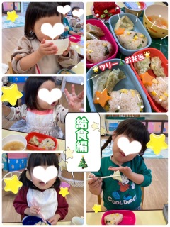 給食はツリーの形のごはんが入ったクリスマスお弁当😊🎄